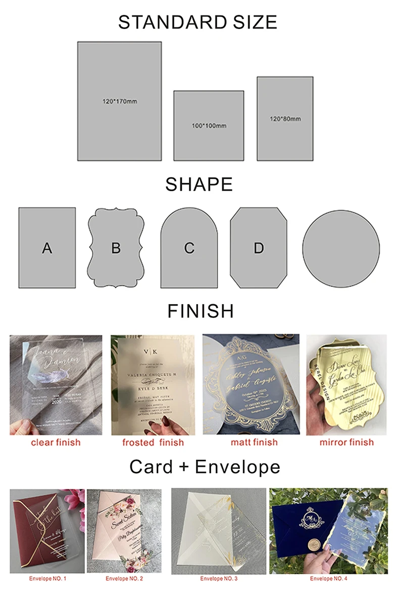 10PCS Elegant Plexiglass Wedding Favor Invitation Card with Print ...