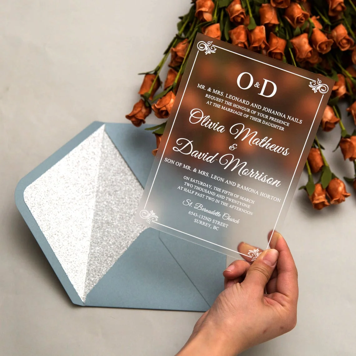Custom Frosted Acrylic Wedding Invitations: Elegant Modern Design Rose ...