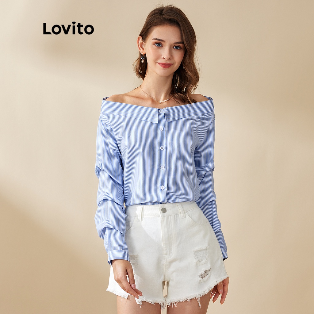 Lovito Casual Striped Plicated Blouses L20D1262 (Blue) | Shopee Philippines