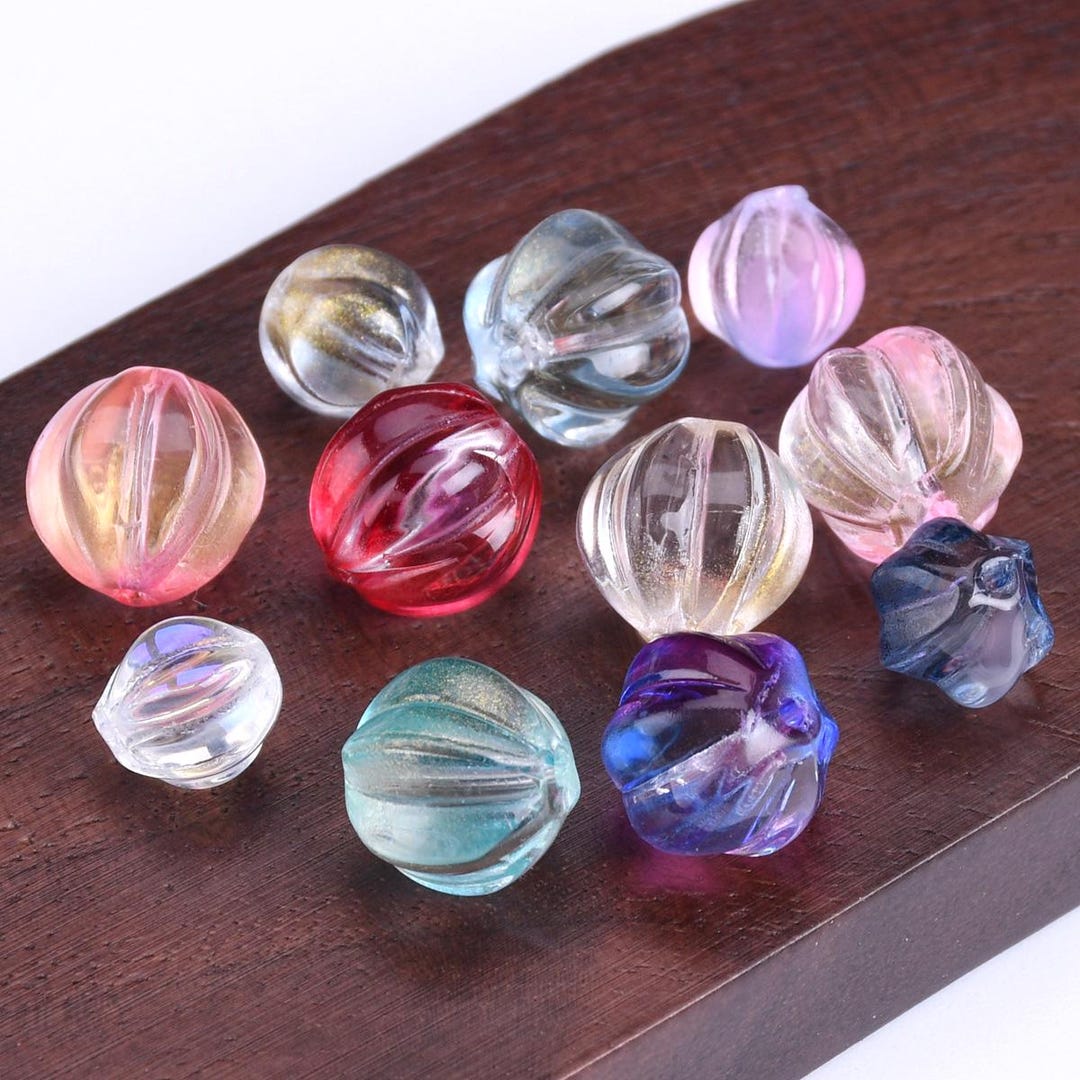Round Colorful Plicated Pumpkin Shape 8mm 10mm Golden Foil Crystal ...