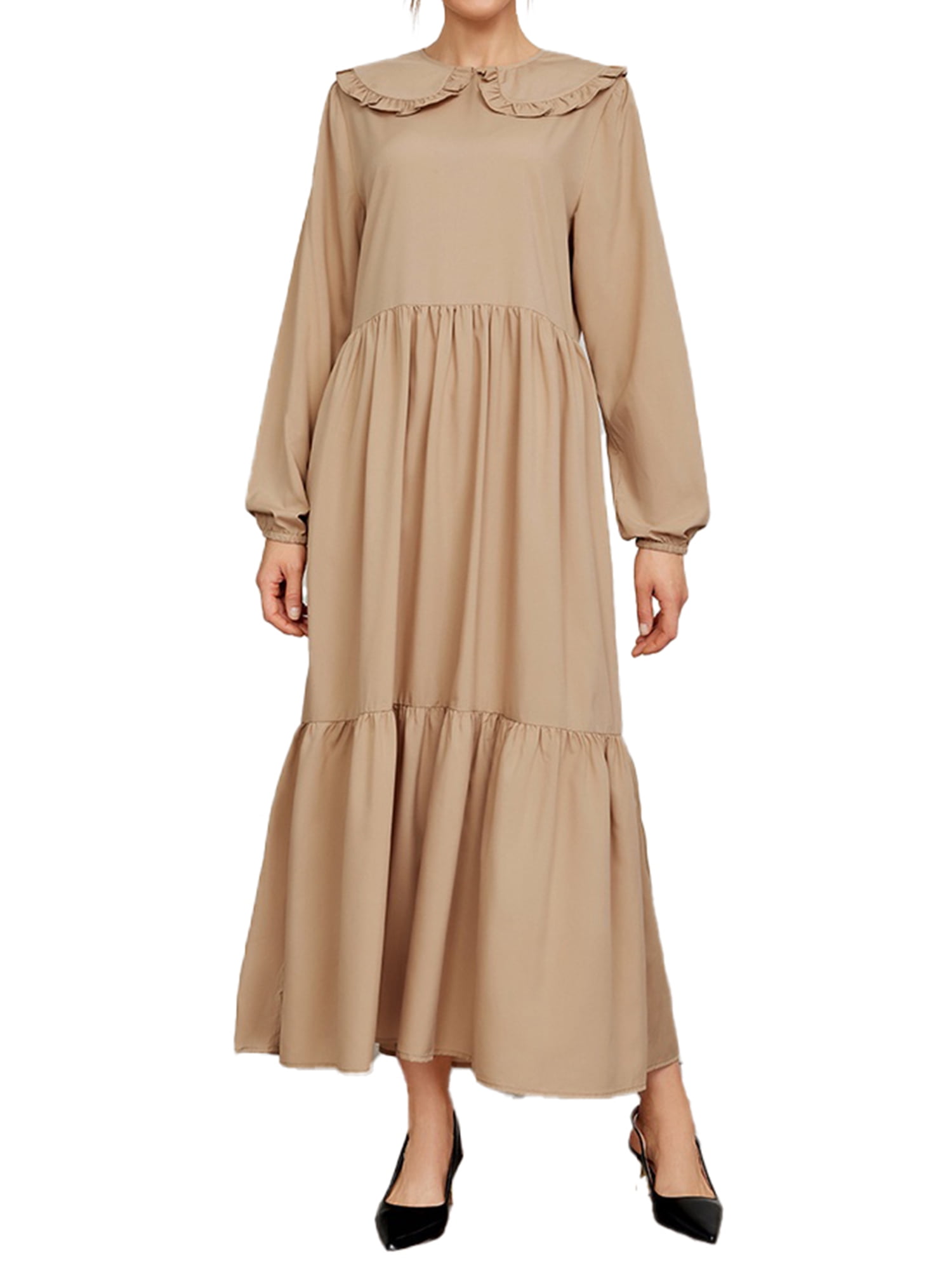 Lovito Plain Peter Pan Collar Plicated Dress - Walmart.com