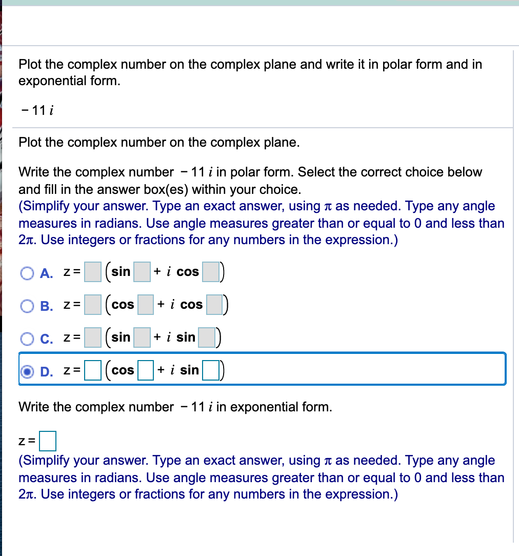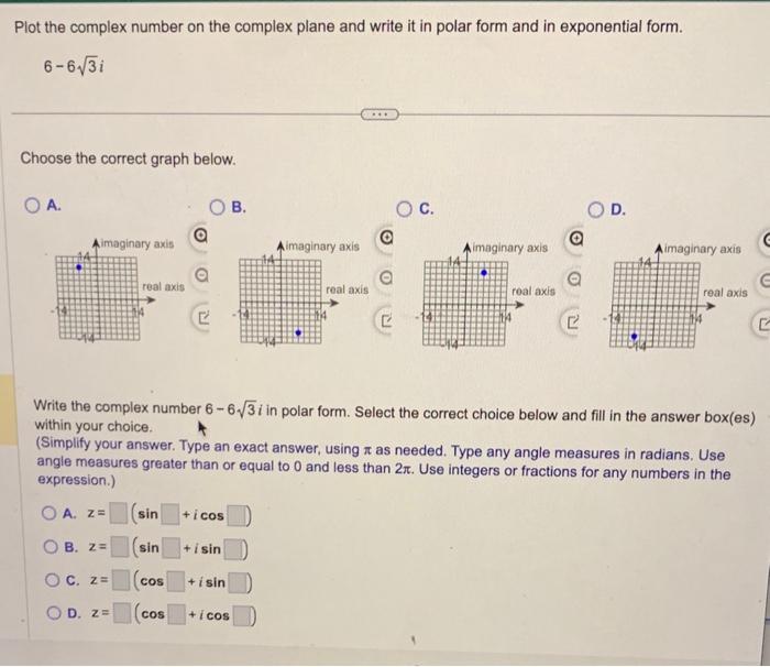 Solved Plot the complex number on the complex plane and | Chegg.com