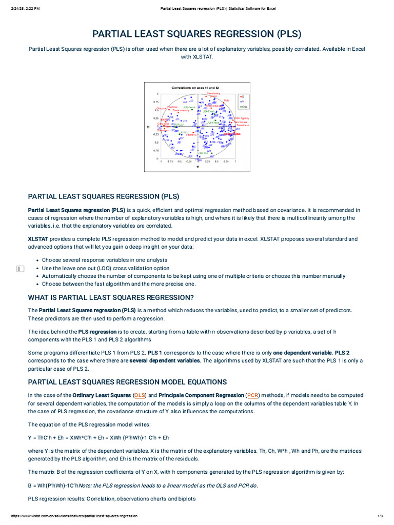 Partial Least Squares regression (PLS) | Statistical Software for Excel
