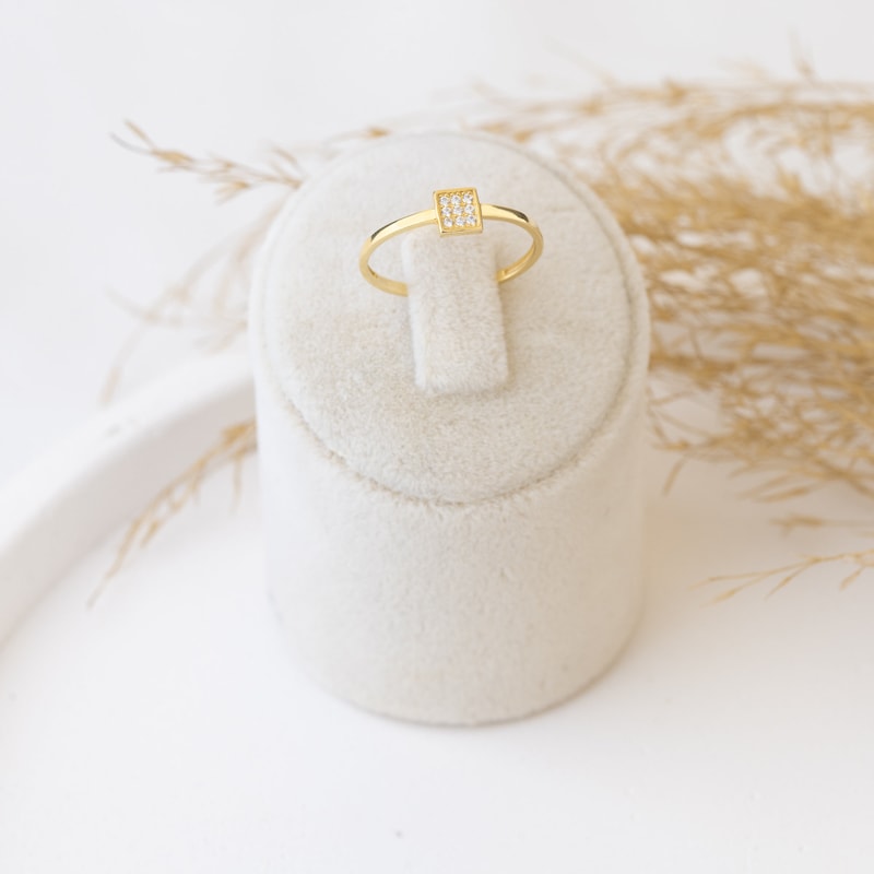 Custom 18K Gold Block Ring with Zirconia, Sterling Silver 925 Jewelry ...
