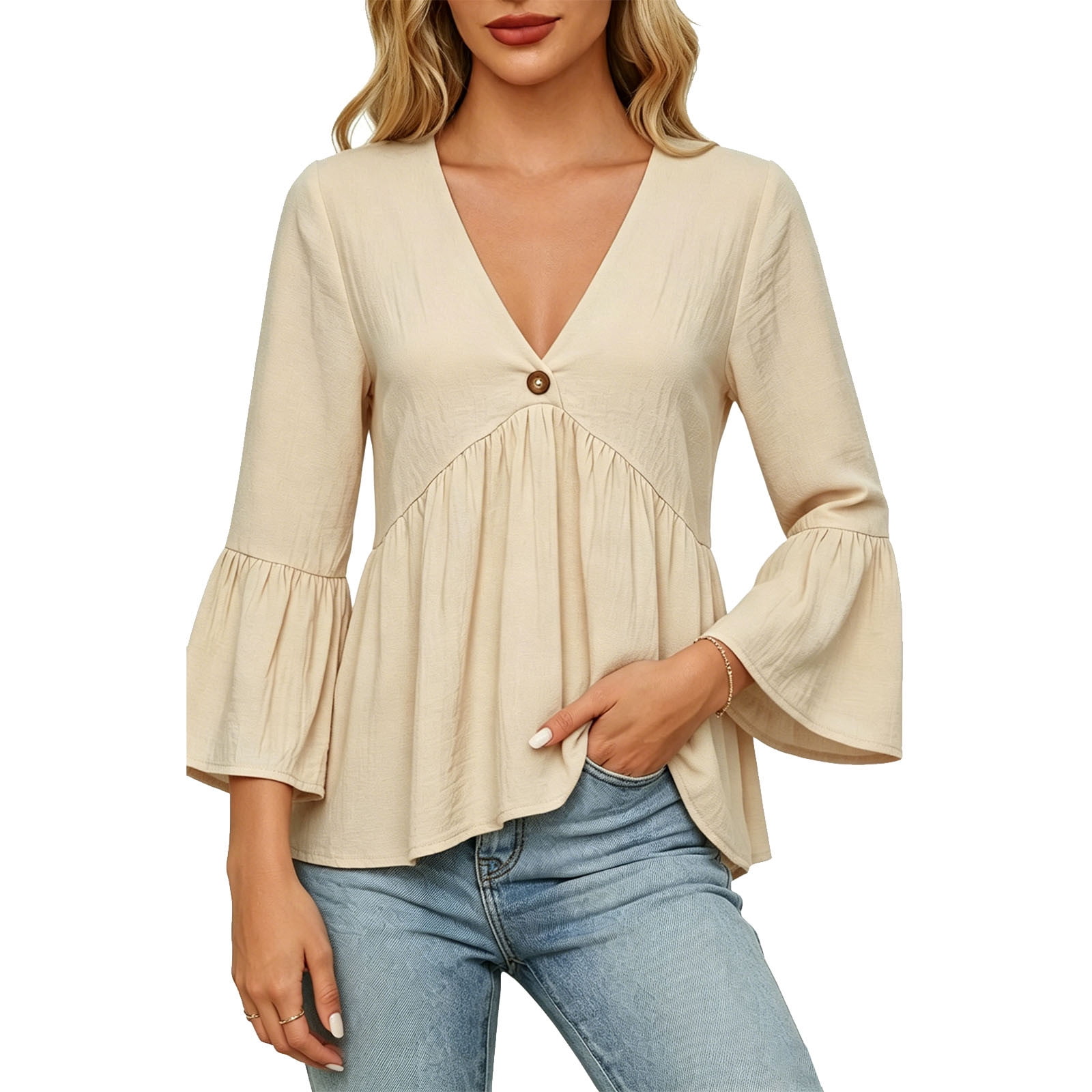 CONZONE Women's Tshirts Flutter Sleeve T Shirts for Women Casual V Neck ...