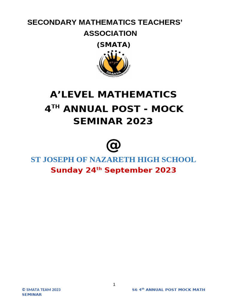 Uace Smata Pure Math Post Mock 24-09-2023 | PDF | Mathematics | Equations