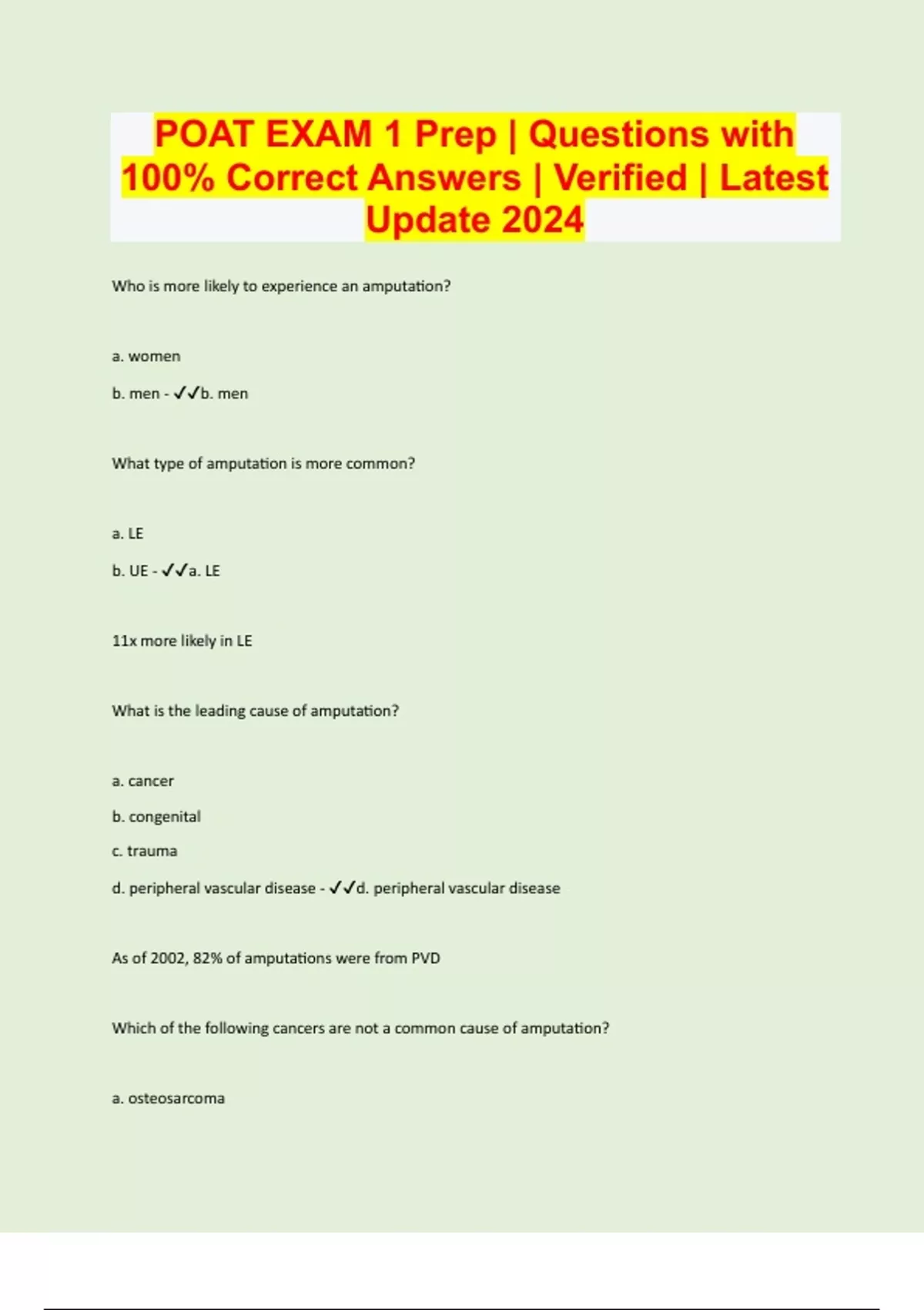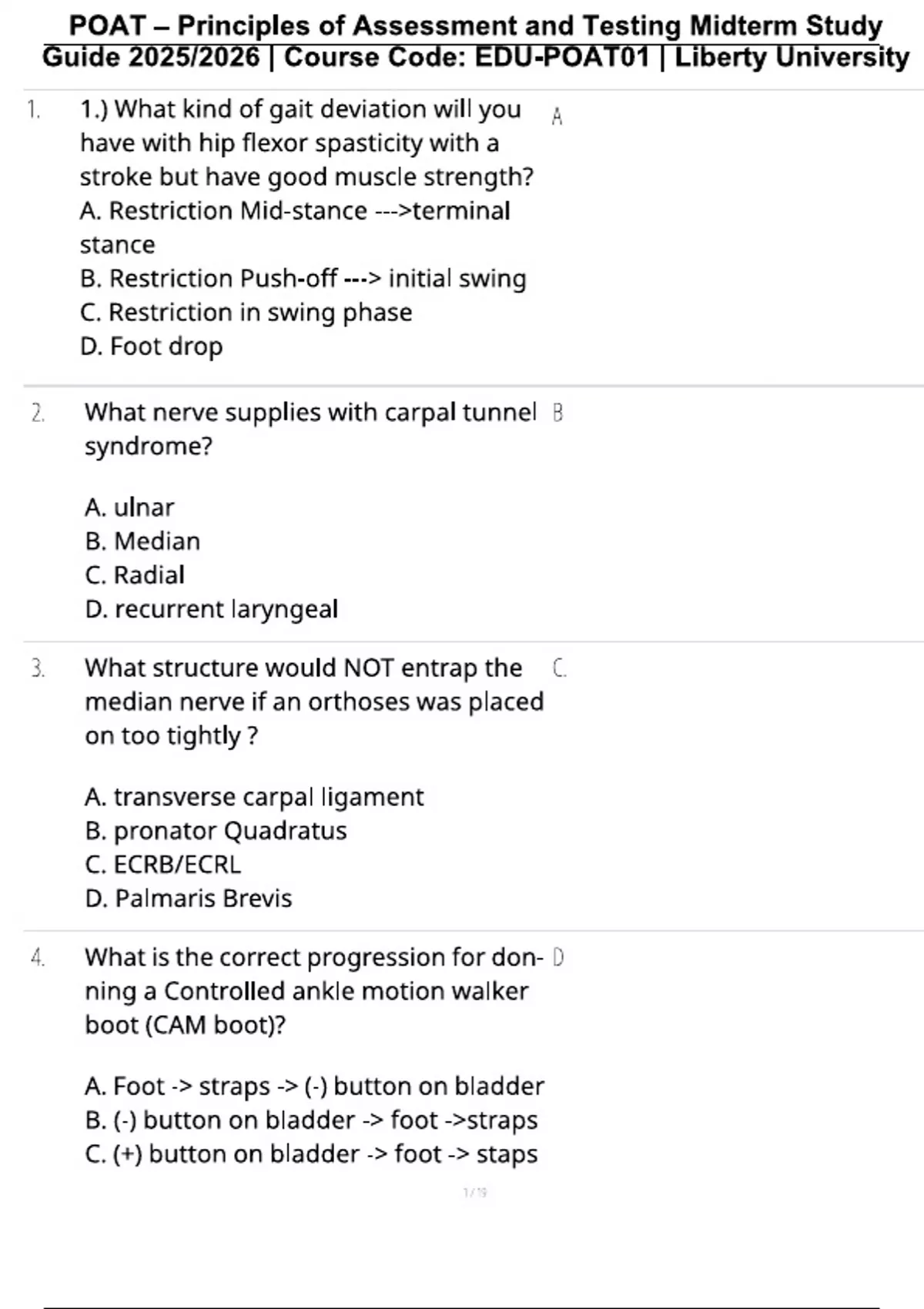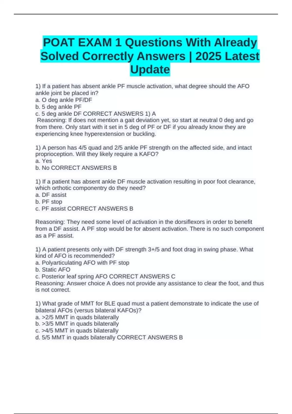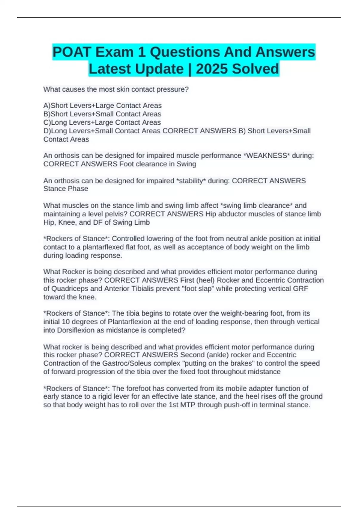 POAT Final Exam Questions With Correct Answers - POAT - Stuvia US
