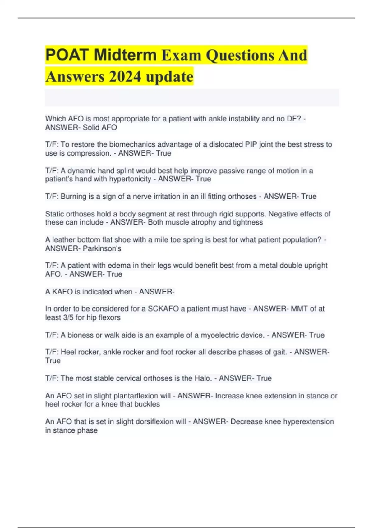 POAT Midterm Exam Questions And Answers 2024 update - POAT - Stuvia US