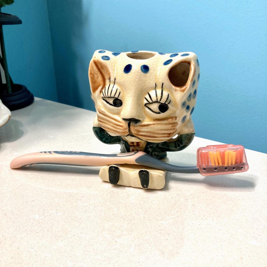 Vtg 1940's Cat Toothbrush Holder Wall Pocket Toothpaste Anthropomorphic ...