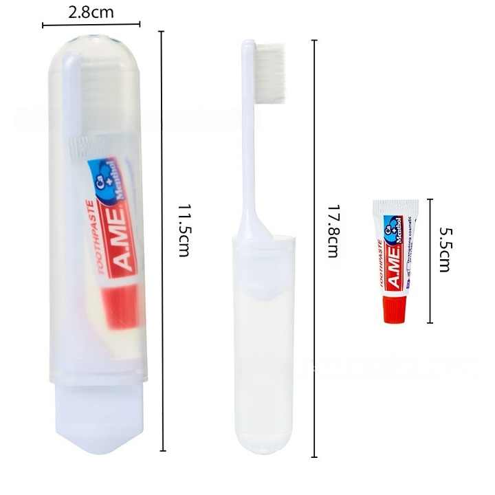 2-in-1 Mini Portable Toothbrush & Toothpaste Kit, for Travel, Camping ...
