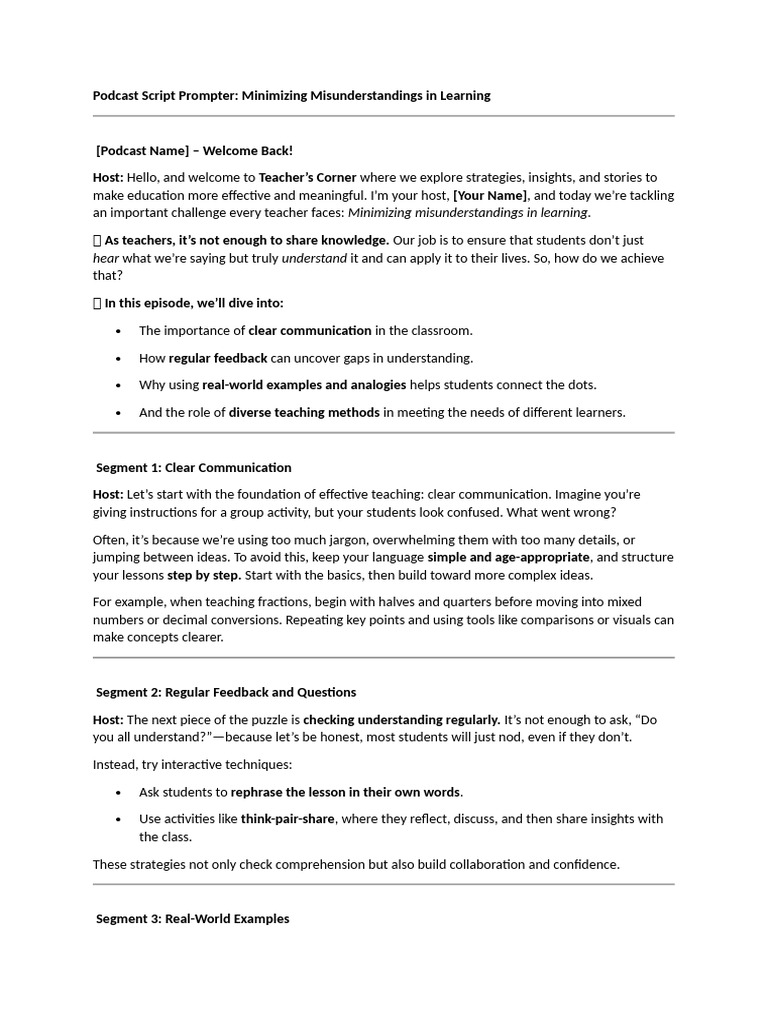 Podcast Script Prompter | PDF | Teaching Method | Learning