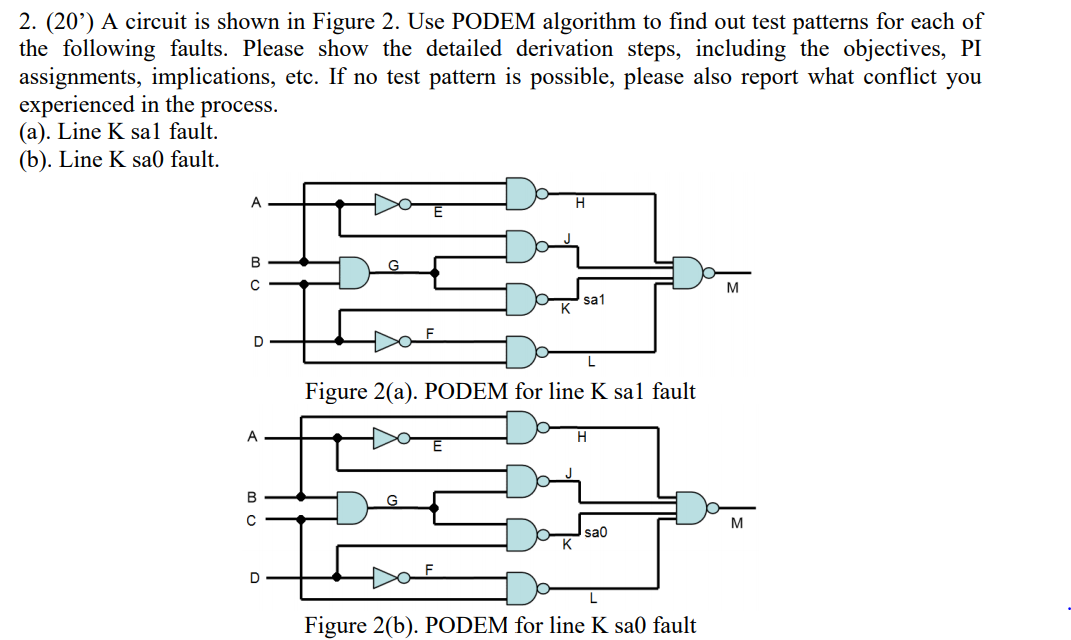 2. (20') A circuit is shown in Figure 2. Use PODEM | Chegg.com