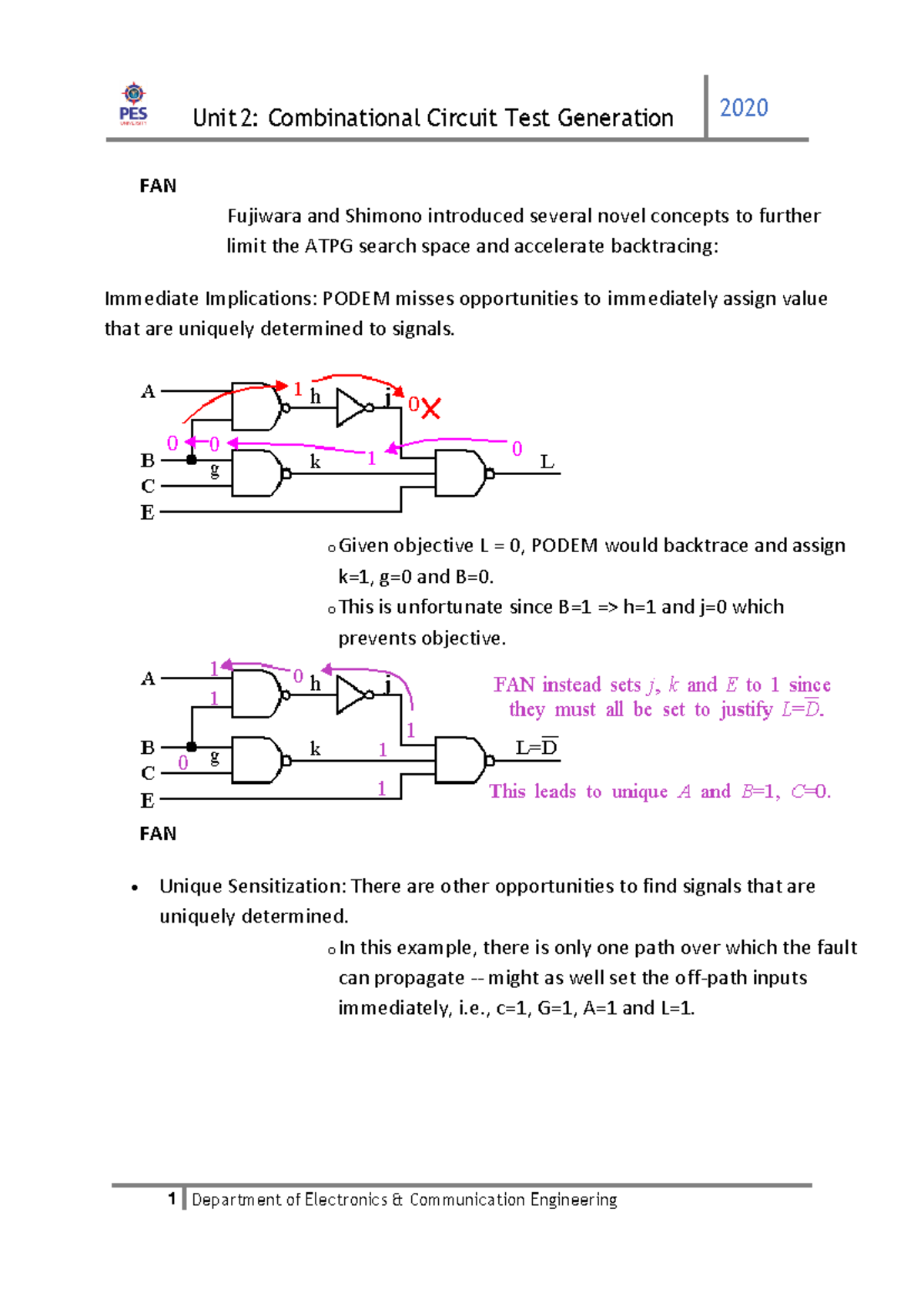 FAN Algorithms and Advanced ATPG Techniques - Prof. Reddy - Studocu