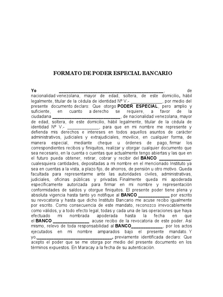 Formato De Poder Especial En Venezuela Modelo PDF WORD