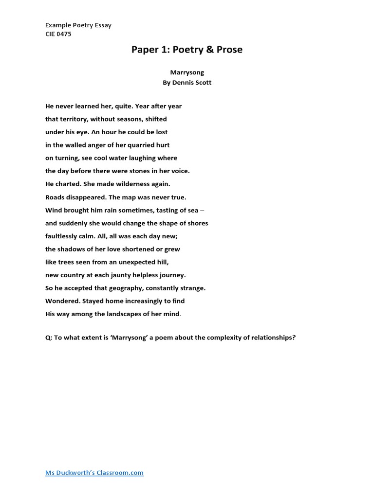 Paper 1: Poetry & Prose: Example Poetry Essay CIE 0475 | PDF | Poetry ...