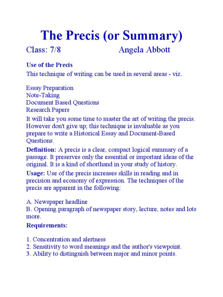Mastering Precis Writing: Techniques and Examples | Course Hero