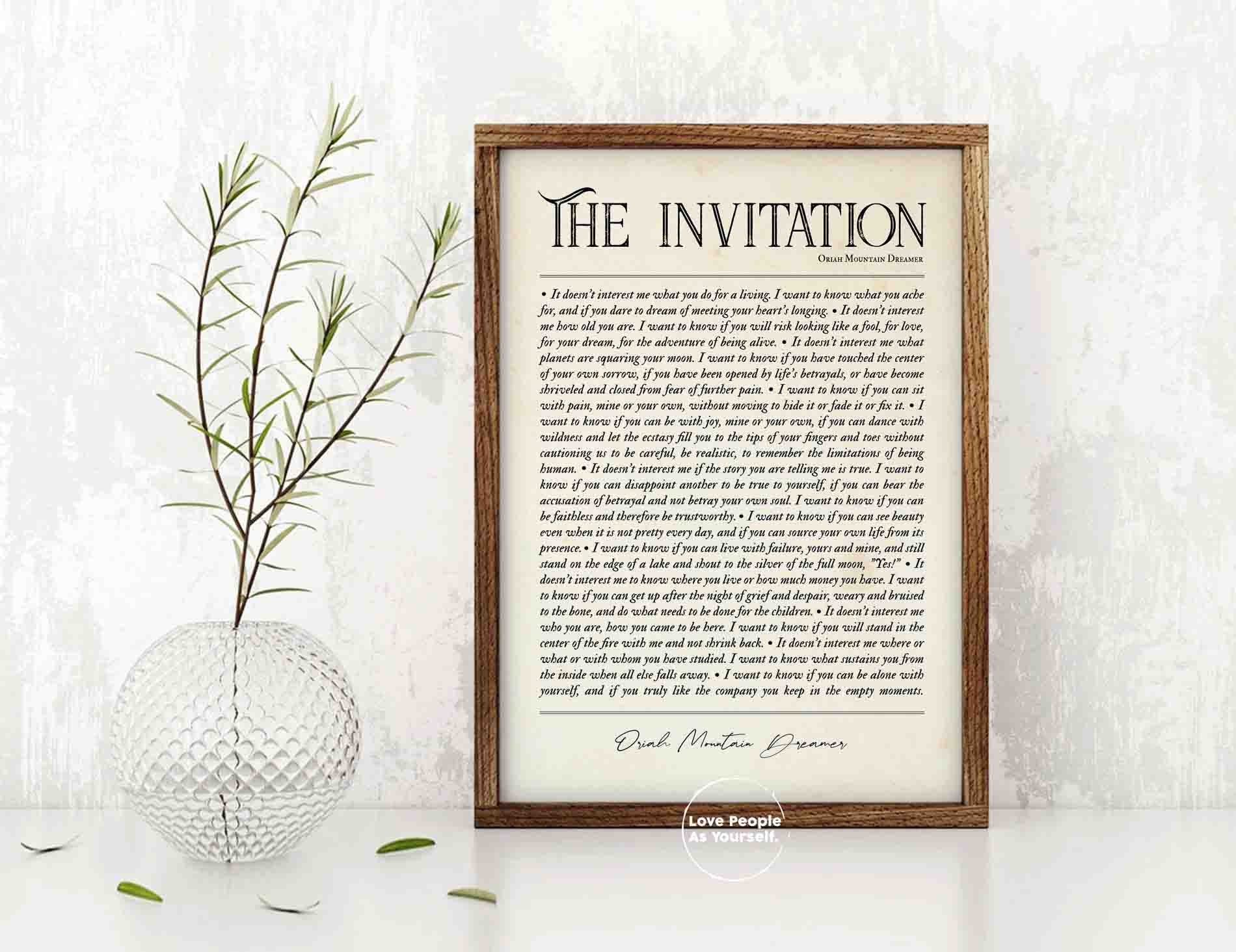 The Invitation Poem, by Oriah Mountain Dreamer, Poetry Print, Wall Art ...