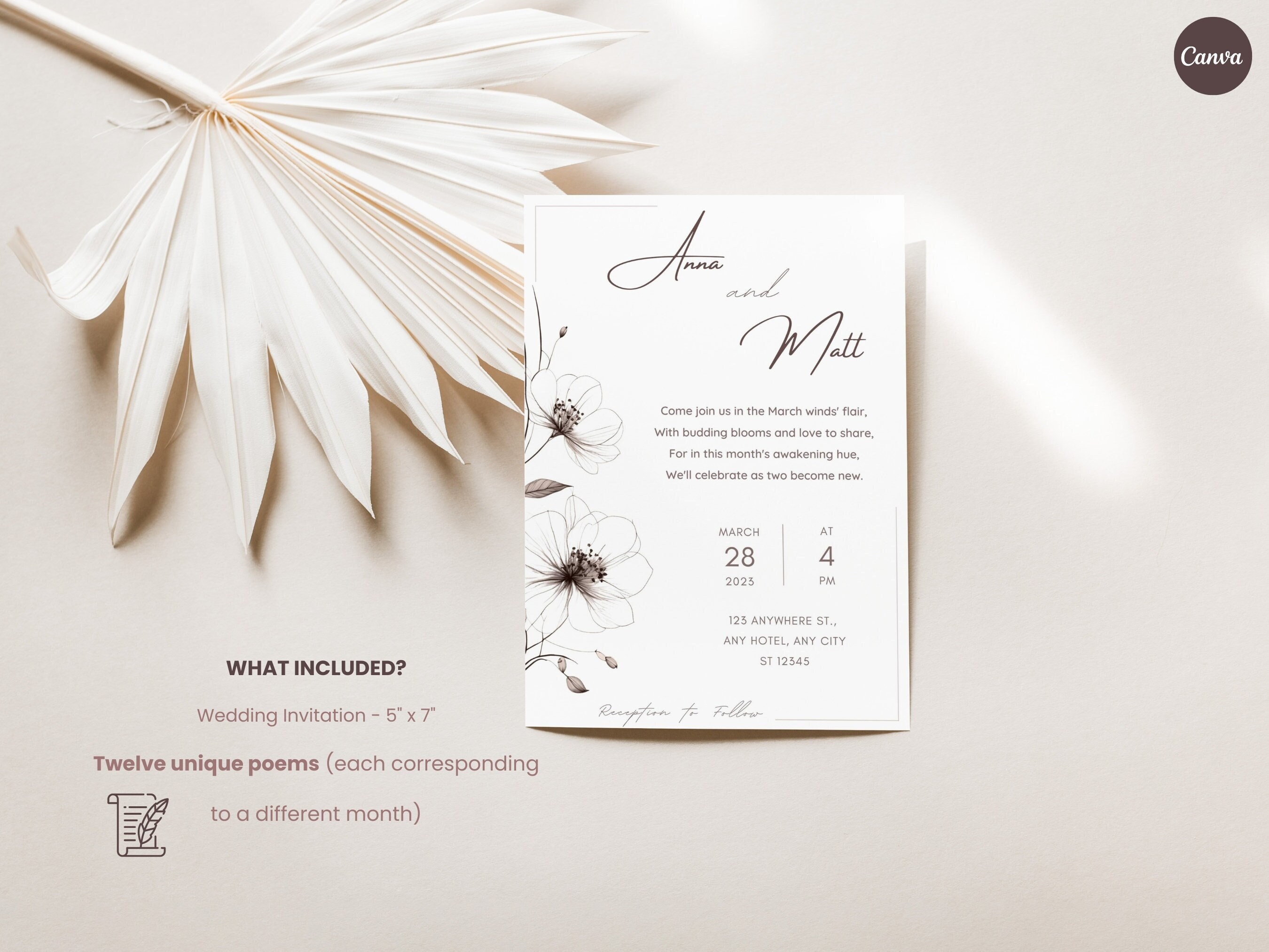 Botanical Wedding Invitation Template With Unique Inviting Poems (12 ...