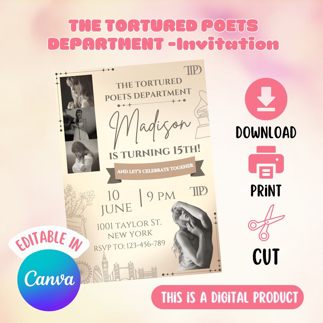 Tortured Poet Birthday Invitation Template Editable in CANVA - Etsy
