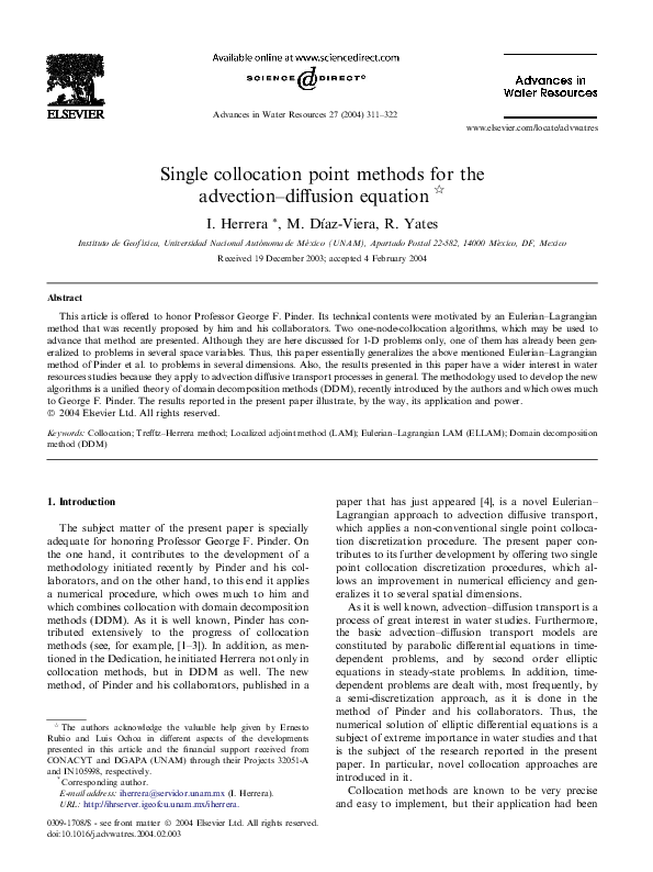 (PDF) Single collocation point methods for the advection–diffusion ...
