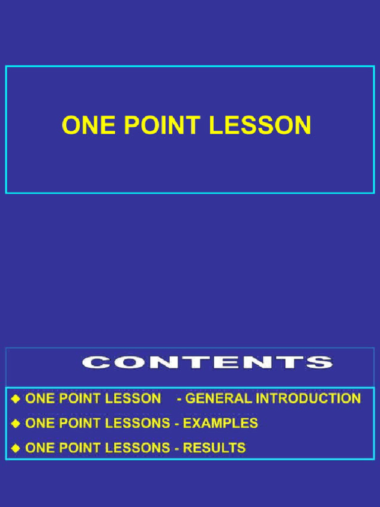 One Point Lesson One point lessons (OPLs) are short, visual ...