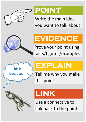 PEEL (Point Evidence Explain Link) Paragraphs Poster | Teaching Resources