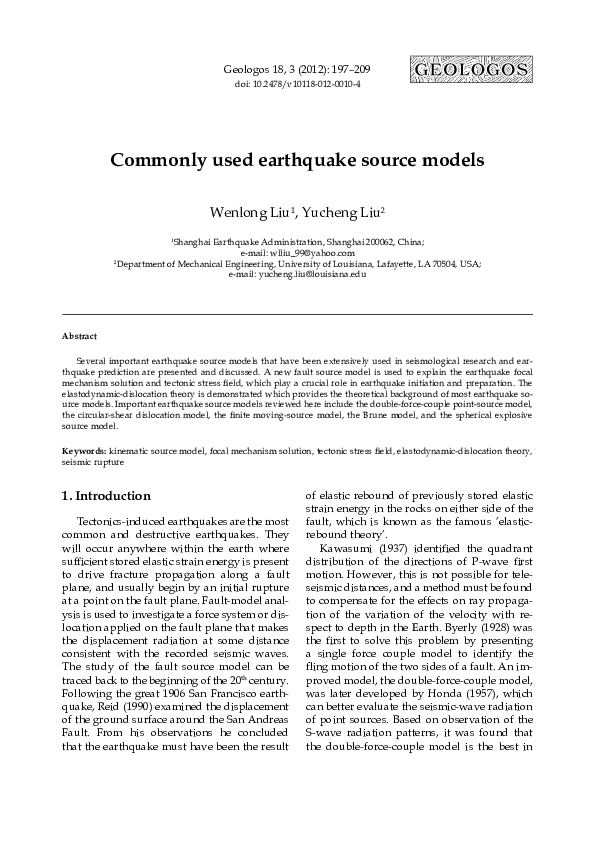 (PDF) Commonly used earthquake source models
