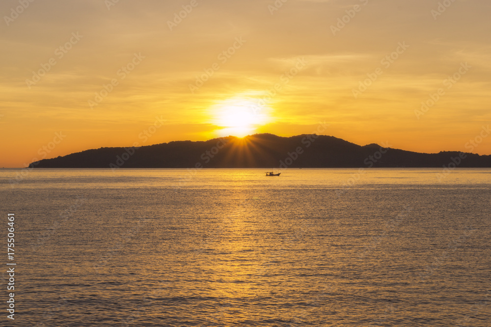 Beatiful sunrise on the mountain with boat from veiw pointat. Khaolamya ...