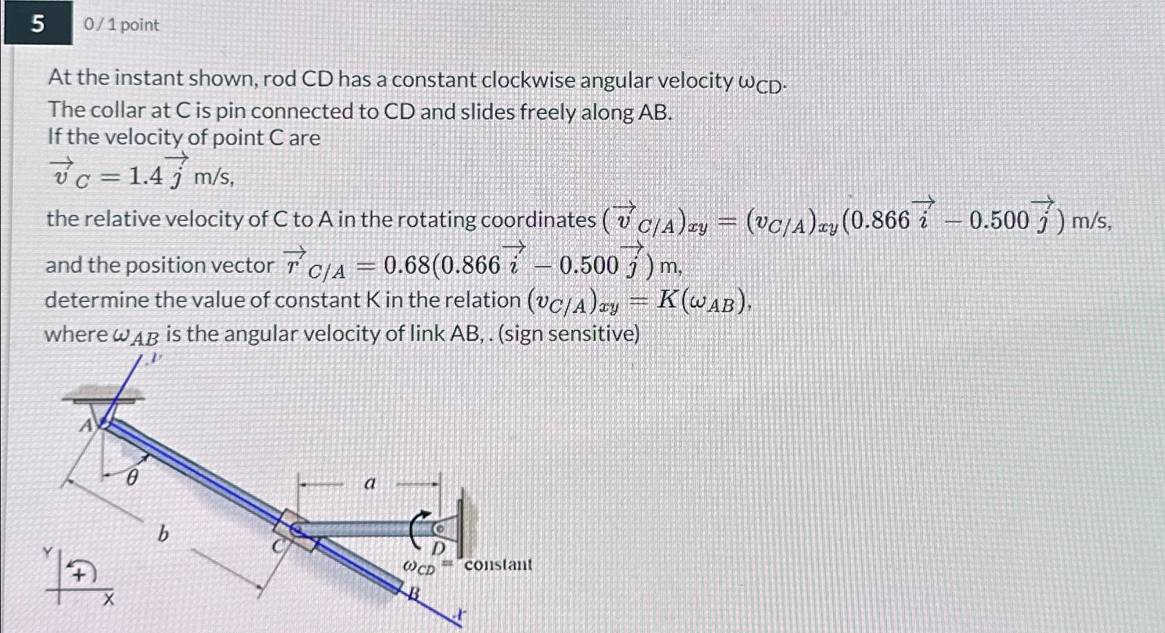 Solved 601 pointAt the instant shown, rod CD has a | Chegg.com