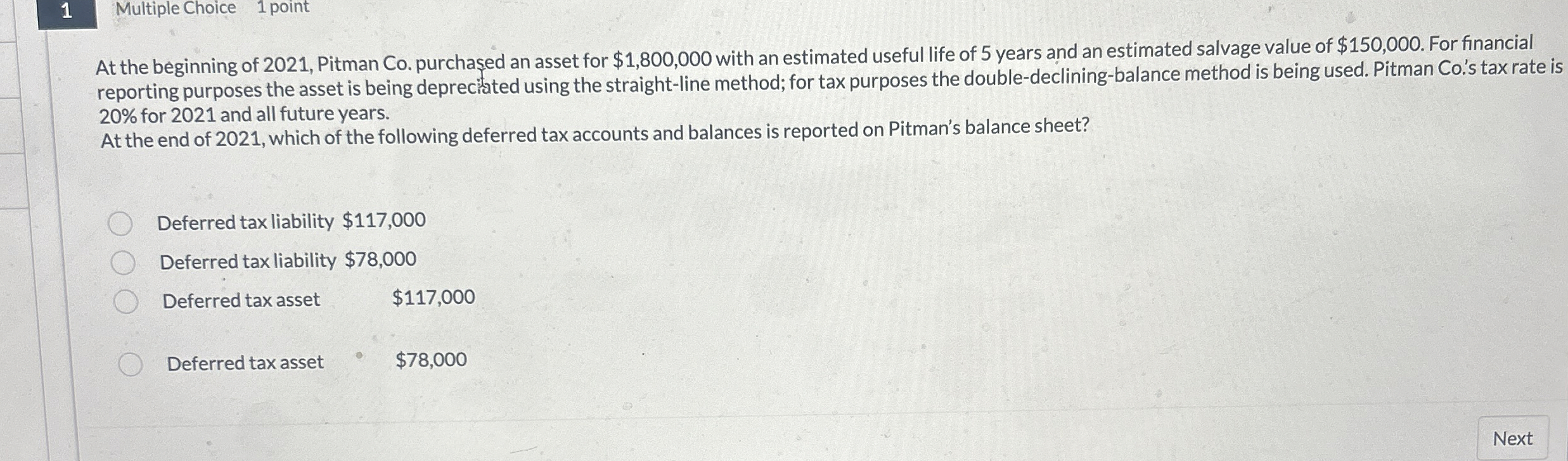 Solved 1Multiple Choice1 pointAt the beginning of 2021 , | Chegg.com