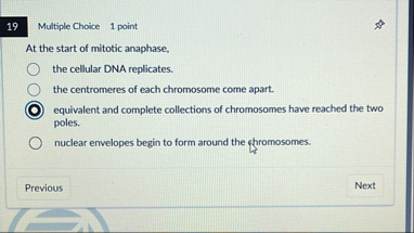 Solved 19Multiple Choice 1 pointAt the start of mitotic | Chegg.com