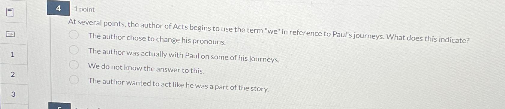 Solved 41 pointAt several points, the author of Acts begins | Chegg.com