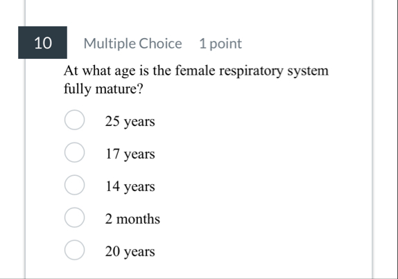 Solved 51Multiple Choice1 pointAt what point in life does | Chegg.com