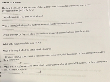 Solved Question 21: (I pointat)The force F=(30,40)N acts on | Chegg.com