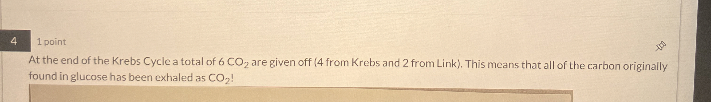 Solved 4 1 pointAt the end of the Krebs Cycle a total of | Chegg.com