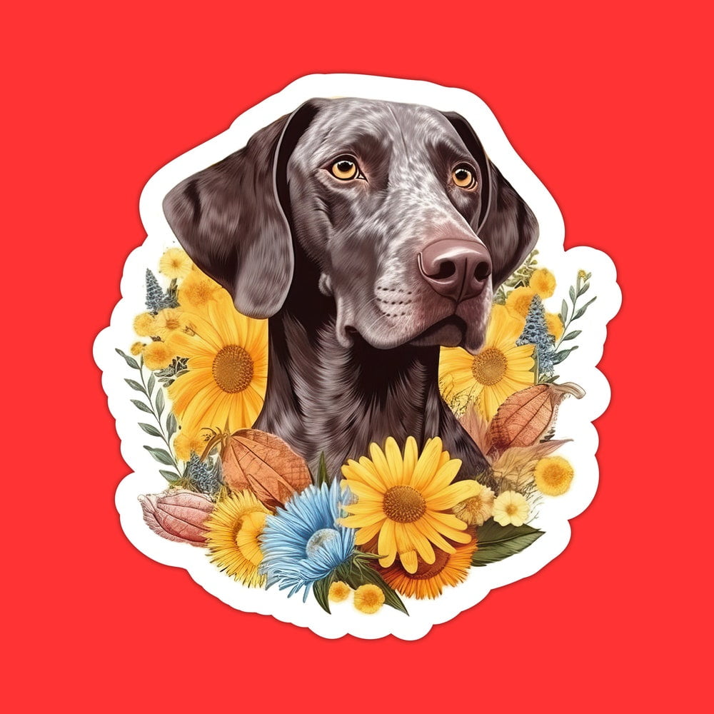 DOPASTICKER German Shorthaired Pointer Sticker, Surrounded By Suowers ...