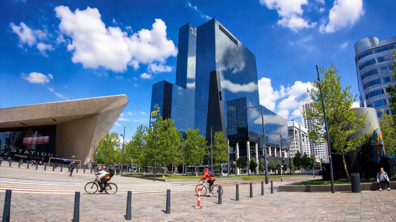 Walking through modern Rotterdam city streets (4K)