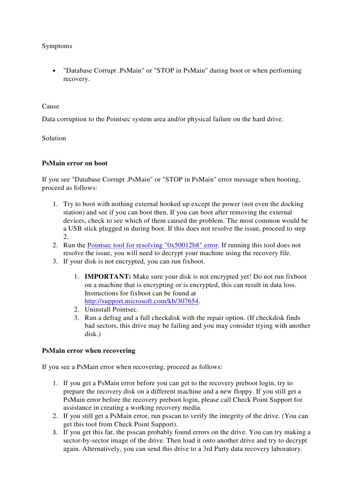 Psmain Error On Boot: Pointsec Tool For Resolving "0X50012B8" Error ...