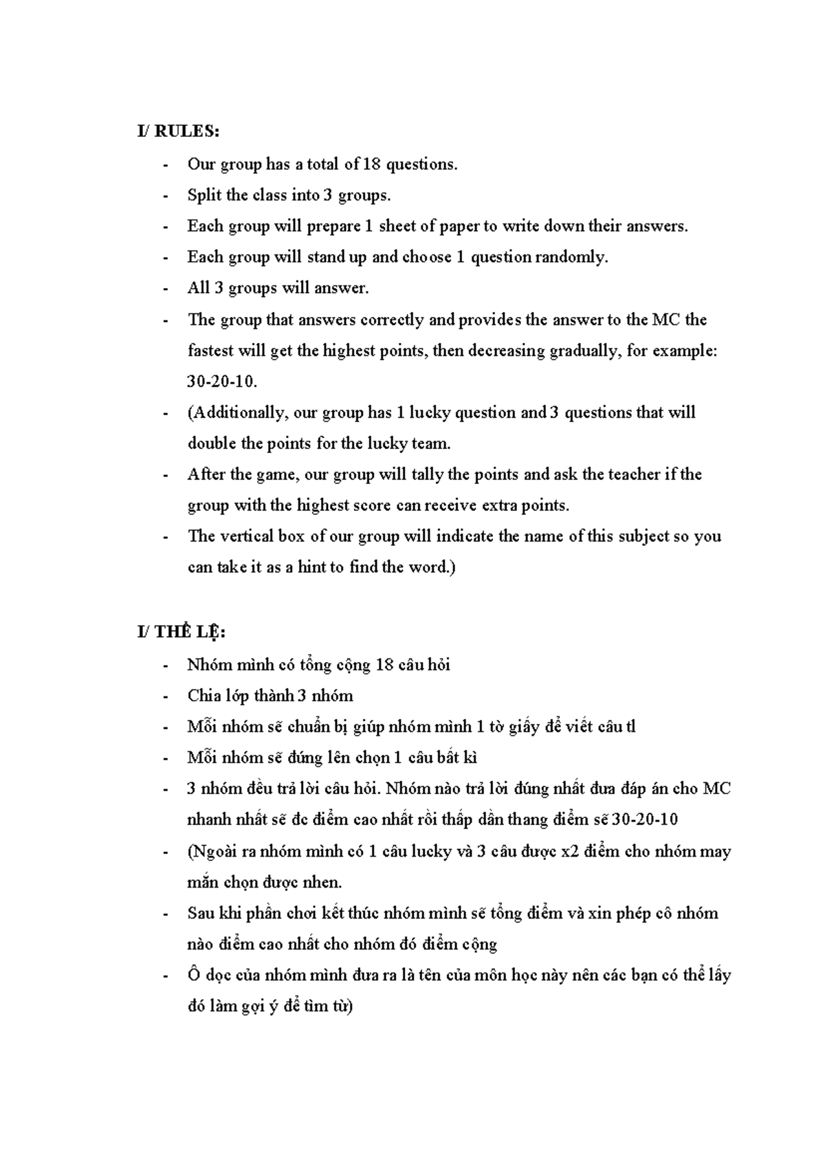 Presentation Content - đây là ppppppppppppppp - I/ RULES: Our group has ...