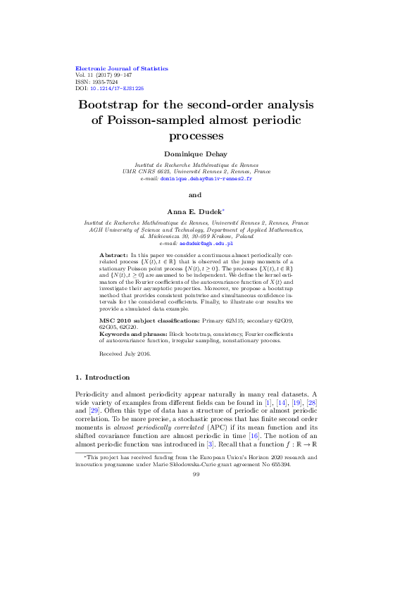 (PDF) Bootstrap for the second-order analysis of Poisson-sampled almost ...
