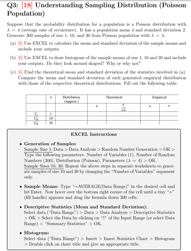 Solved Q3: [18] Understanding Sampling Distribution (Poisson | Chegg.com