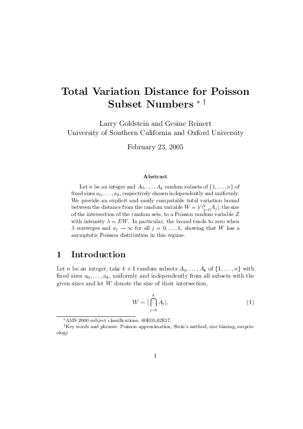 (PDF) Total Variation Distance for Poisson Subset Numbers