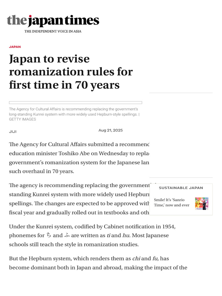 ''Japan To Revise Romanization Rules For First Time in 70 Years ...
