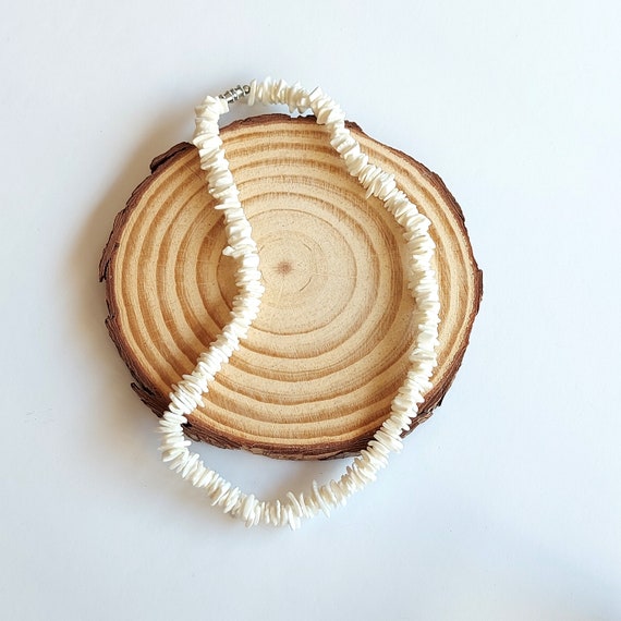 White Puka Shell Necklace Wood and Seashell Necklace White and - Etsy