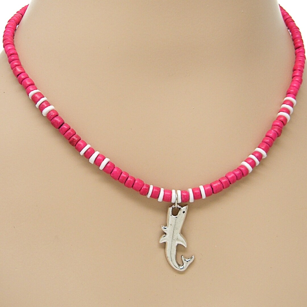 Necklace Shark Pink Coconut Beads White Puka Shell Hawaiian Beach ...