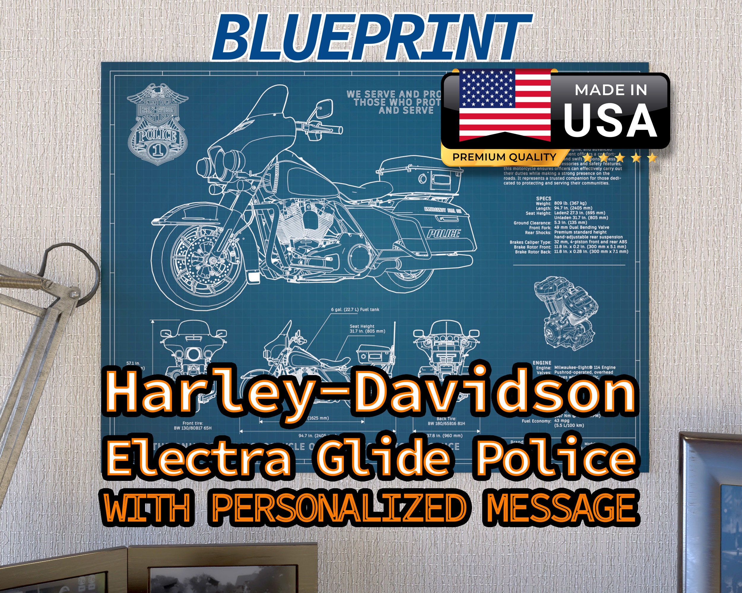 Harley-davidson Electra Glide Police Blueprint Motorcycle Wall Art With ...