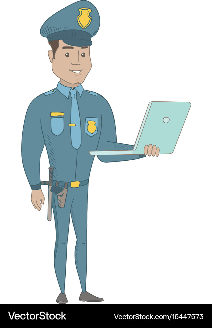 Policeman Uses Computer Examine File Vector Stock Vector (Royalty Free ...
