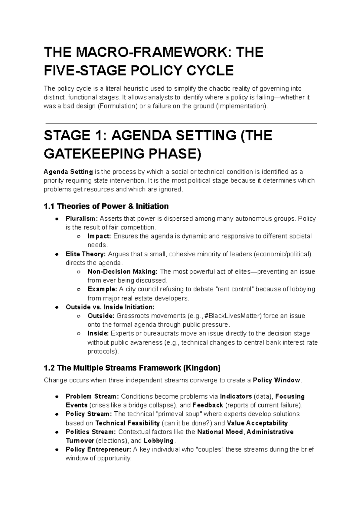 Midterm Notes: Understanding the Policy Cycle and Its Stages - Studocu