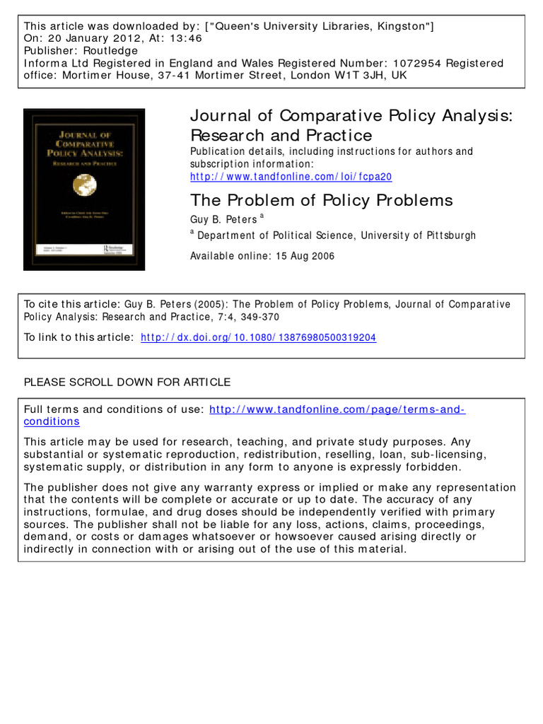 (PDF) What is the Policy Problem?: Methodological Challenges in Policy ...