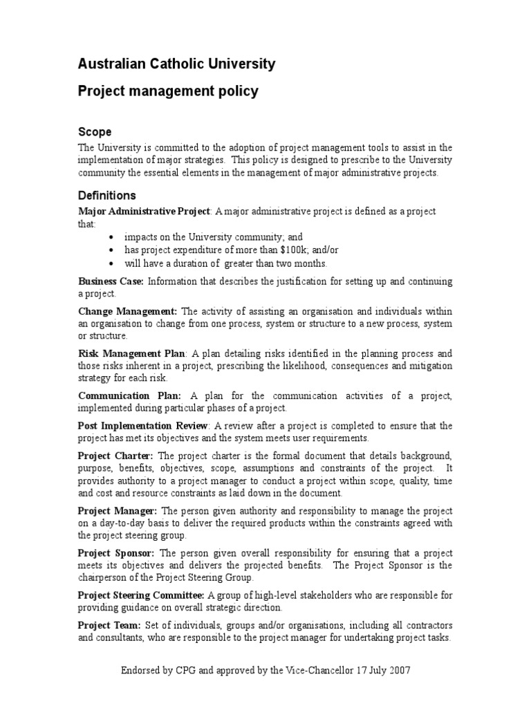 Project Management Policy | Project Management | Leadership | Free 30 ...